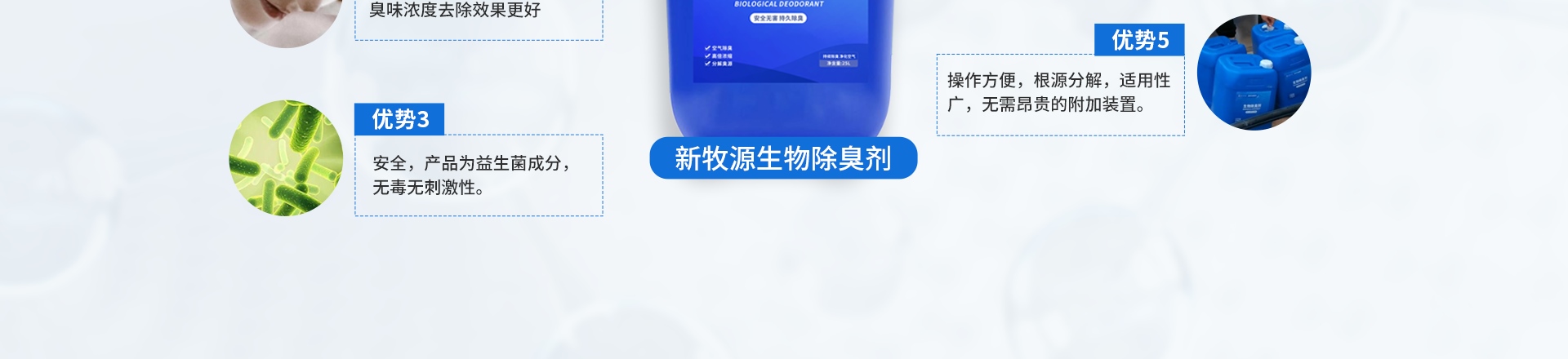 4.除臭(chòu)劑可(kě)以(yǐ)和某些化學製劑配合使(shǐ)用,但不能和殺菌劑同時使用(yòng)。